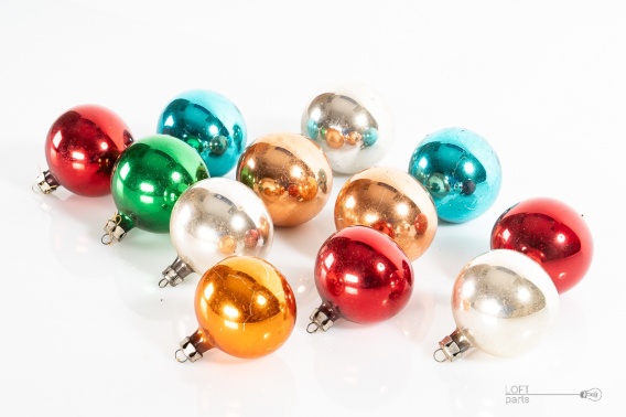 Komplet dwunastu bombek choinkowych wyprodukowanych w Szklarsko Mineralnej Spółdzielni Pracy Milicz