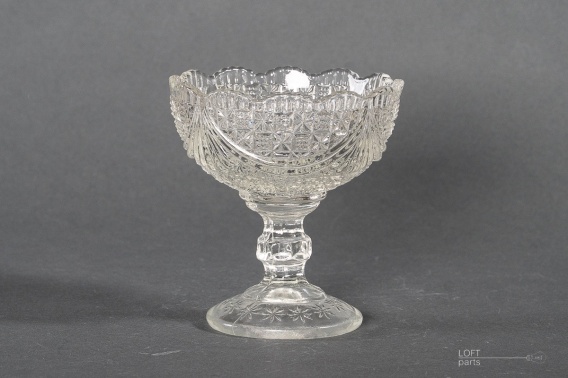 Bezbarwna bombonierka ''Girlandy'' wyprodukowana w Hucie Szkła Gospodarczego Ząbkowice. W katalogu huty nosi numer 339.