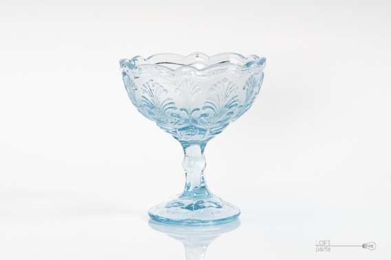 Blue chocolate bowl ''Palm trees''. Manufactured in the Ząbkowice Household Glass Factory. In the catalogue of the glassworks it bears the number 336.