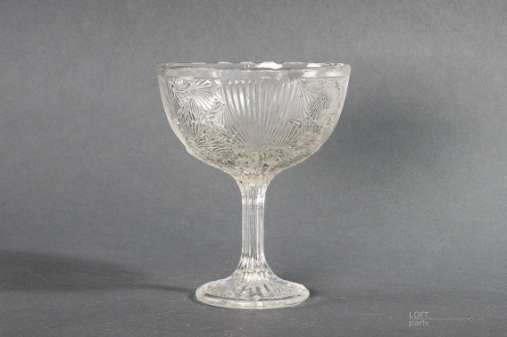 Bezbarwna bombonierka ''Wachlarze''. Wyprodukowana w Hucie Szkła Gospodarczego Ząbkowice. W katalogach huty nosi numer 1178.