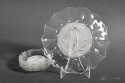 Bezbarwny zestaw deserowy wyprodukowany w Hucie Szkła Gospodarczego Hortensja składający się z patery i pięciu talerzyków. W katalogu huty nosi numer 416