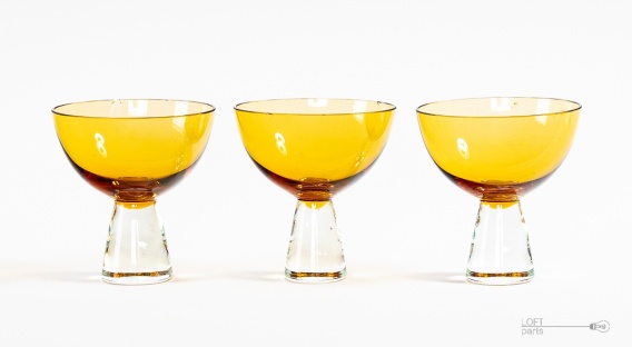 Komplet trzech miodowych kieliszków na bezbarwnej stopie. Niestety nie znam ich pochodzenia.
