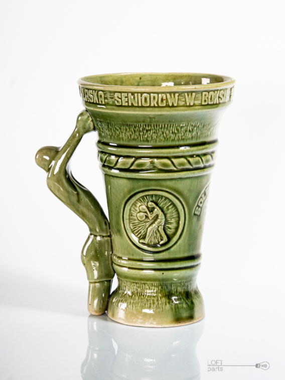 Pamiątkowy kufel wyprodukowany z okzji 37 Indywidualnych Mistrzostw Dolnego Ślaska Seniorów w Boksie w Zakładach Ceramicznych Bolesławiec.