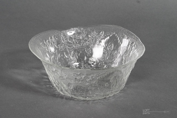 Bezbarwna miska ''Strawberry'' wyprodukowana w Hucie Szkła Gospodarczego Ząbkowice. Zaprojektowana przez Erykę Trzewik-Drost.