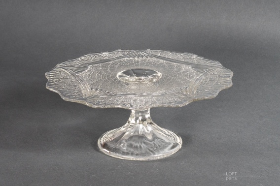 Bezbarwna patera/tortownica ''Girlandy'' wyprodukowana w Hucie Szkła Gospodarczego Ząbkowice.