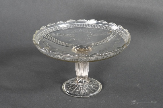 Bezbarwna patera/owocarka ''Wieńce''. Wyprodukowana w Hucie Szkła Gospodarczego Ząbkowice. W katalogu huty nosi numer 2239.