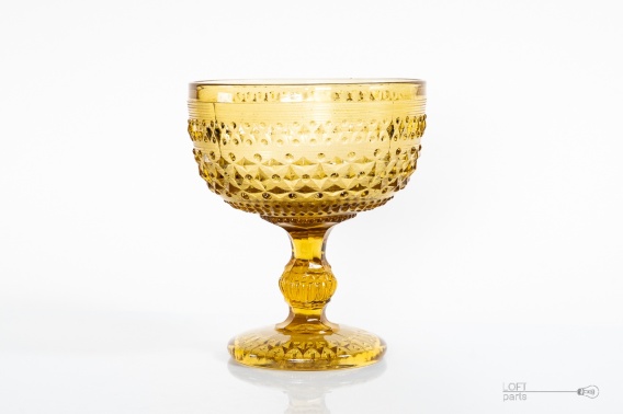 Miodowa patera/owocarka ''Romby i guziczki''. Wyprodukowana w Hucie Szkła Gospodarczego Ząbkowice. Zaprojektowana przez Erykę Trzewik-Drost.