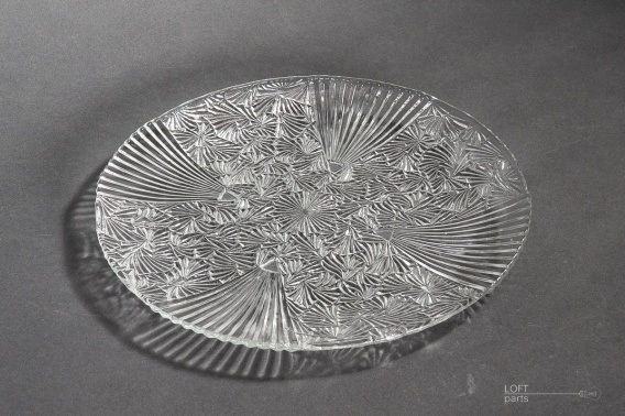 Bezbarwna patera ''Wachlarze'' wyprodukowana w Hucie Szkła Gospodarczego Ząbkowice.