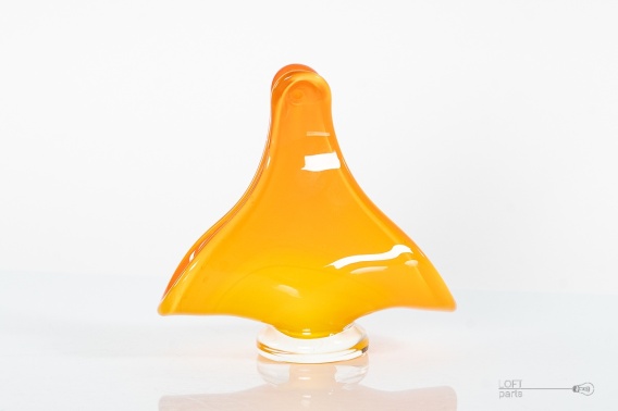 Orange napkin on a colorless foot. Designed by Jerzy Słuczan-Orkusz. Produced in Tarnowiec Glassworks.
