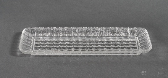 Colourless ''Cora'' tray produced in the Ząbkowice Household Glassworks. Designed by Eryka Trzewik-Drost.