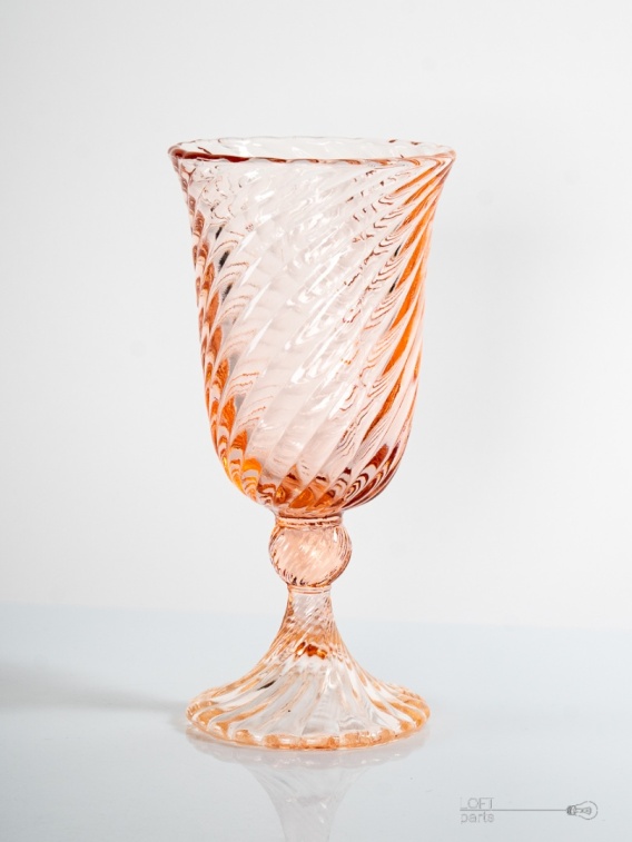 Rozalinowy wazon ''Spirelli'' zaprojektowany przez Ryszarda Serwickiego. Wyprodukowany w Hucie Szkła Gospodarczego Ząbkowice.