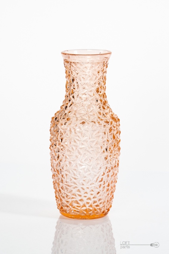 Rozalinowy wazonik ''Lodowy grys'' wyprodukowany w Hucie Szkła Prądniczanka.