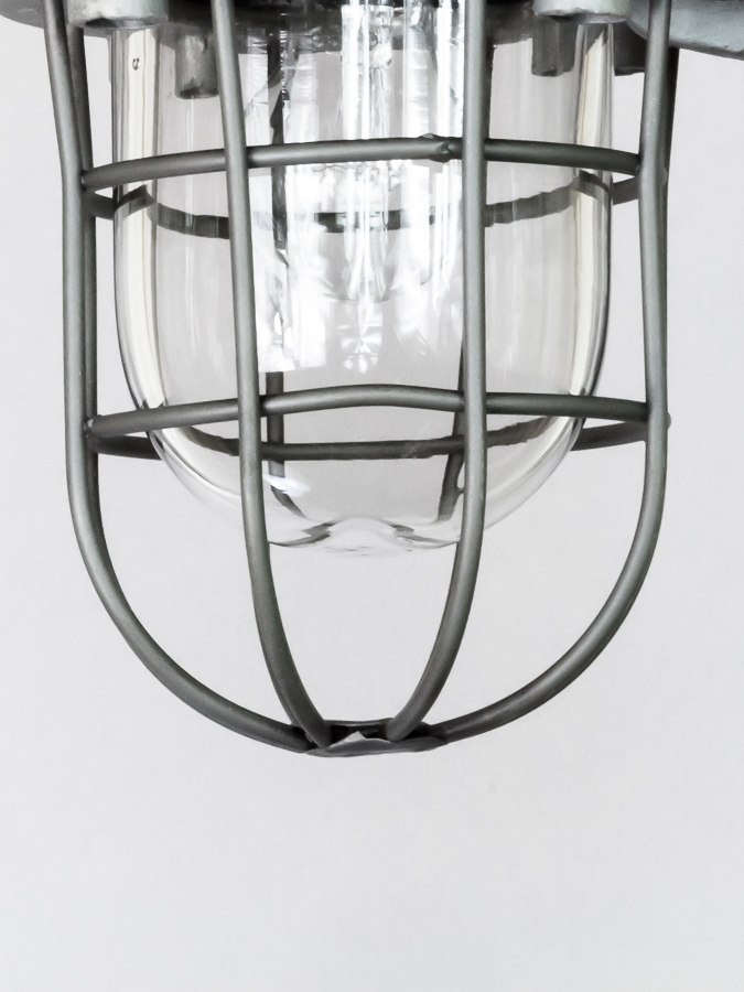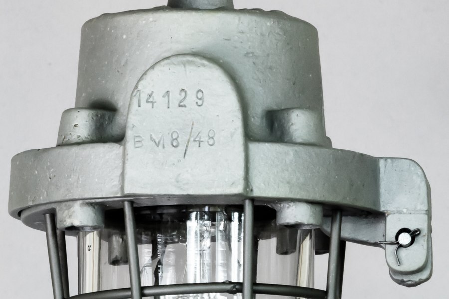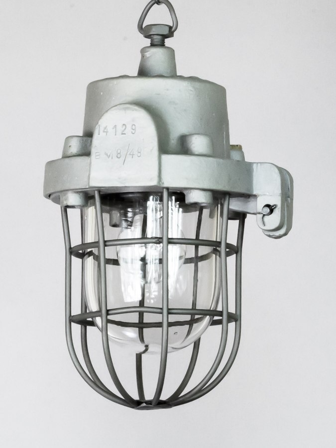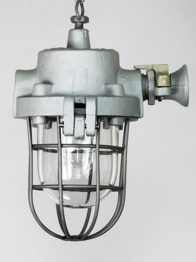 Aluminum pendant lamp in gray. Cleaned and covered with clearcoat. Equipped with a bulb
