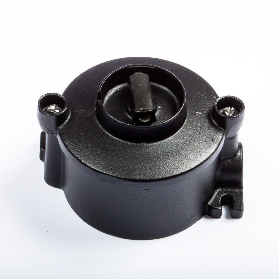 Aluminium switch in black. Large, massive with a very durable mechanism. It can be used to turn off the lighting in the loft interior.