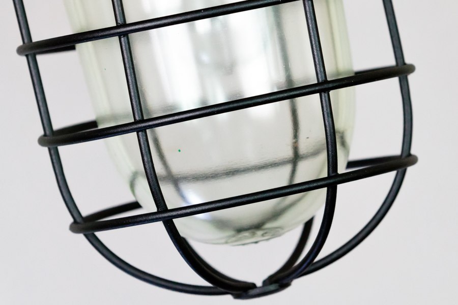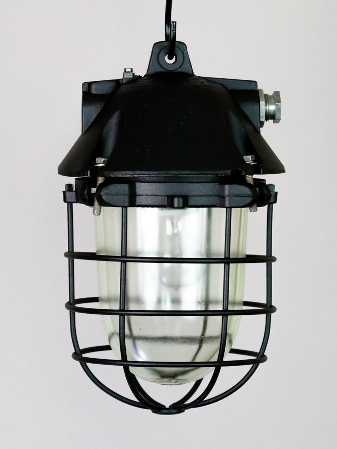 Wisząca lampa aluminiowa w kolorze czarnym. Odnowiona, wyposażona w żarówkę. Idealna do industrialnego wnętrza.