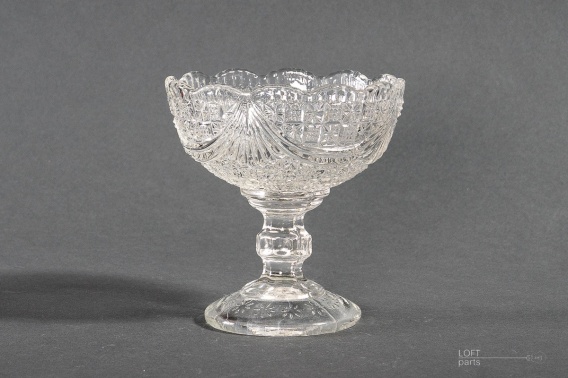 Bezbarwna bombonierka ''Girlandy'' wyprodukowana w Hucie Szkła Gospodarczego Ząbkowice. W katalogu huty nosi numer 339.