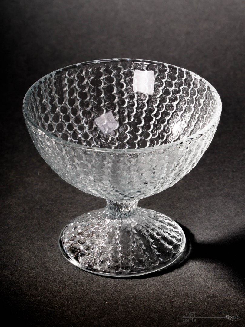Colourless chocolate bowl ''Sea Hedgehog'' designed by Eryka Trzewik - Drost. Manufactured in the Ząbkowice Household Glass Factory.