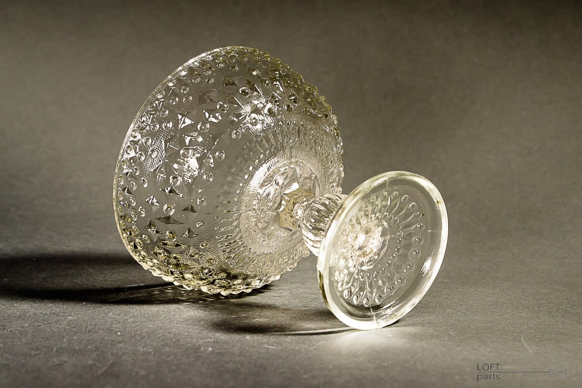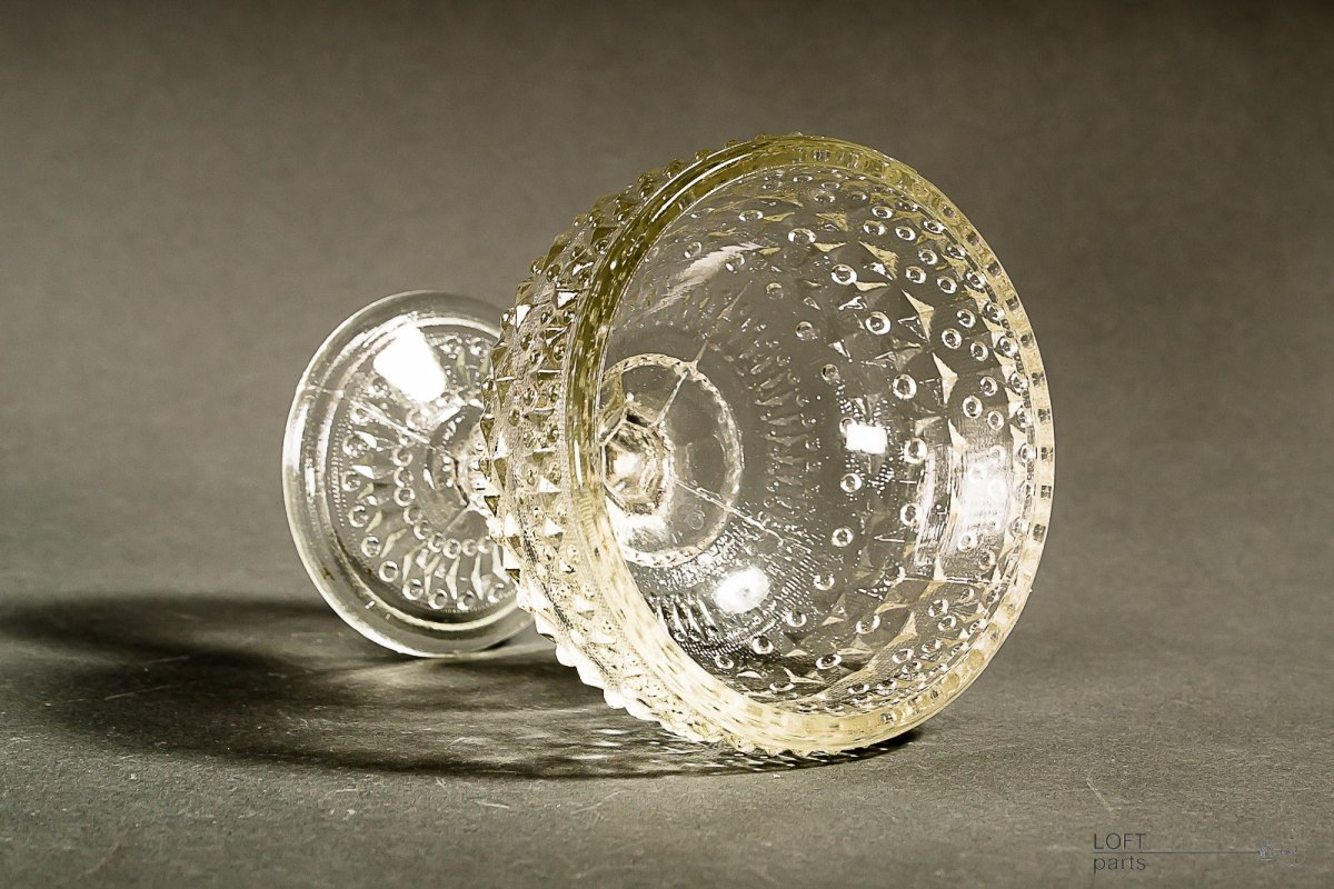 Bezbarwna bombonierka ''Romby i guziczki'' zaprojektowana przez Erykę Trzewik-Drost. Wyprodukowana w Hucie Szkła Gospodarczego Ząbkowice.