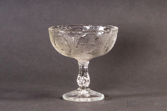Bezbarwna bombonierka Medaliony pochodząca z Huty Szkła Gospodarczego Ząbkowice. W katalogu huty nosi numer 1180.