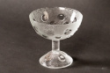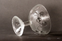 Bezbarwna bombonierka ''Oculus''. Wyprodukowana w Hucie Szkła Gospodarczego Ząbkowice.