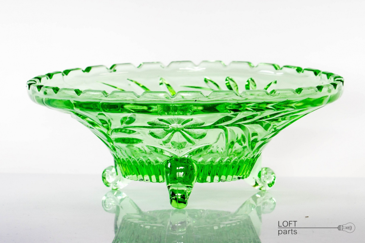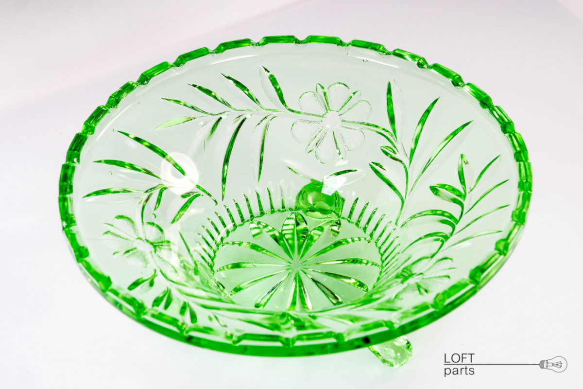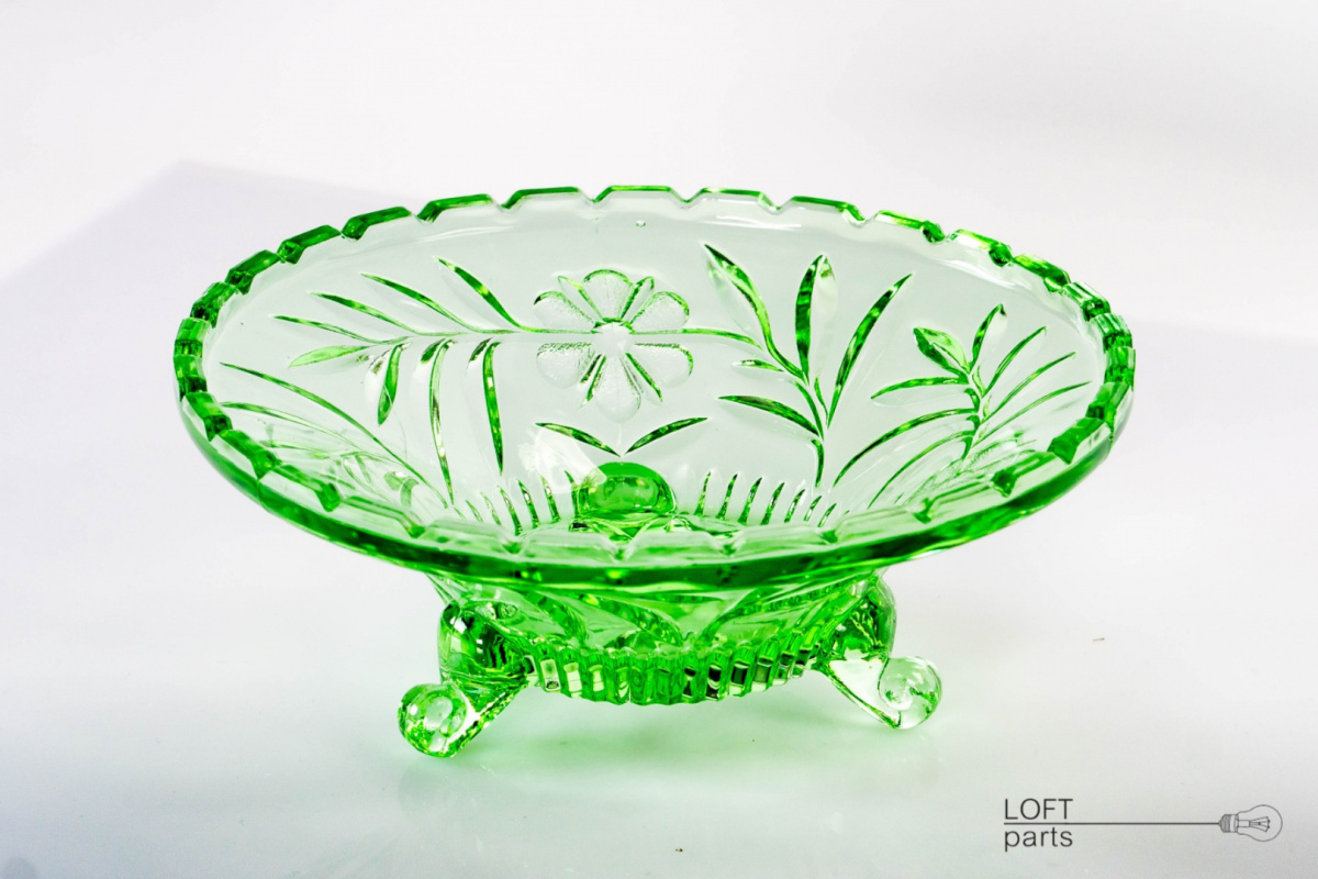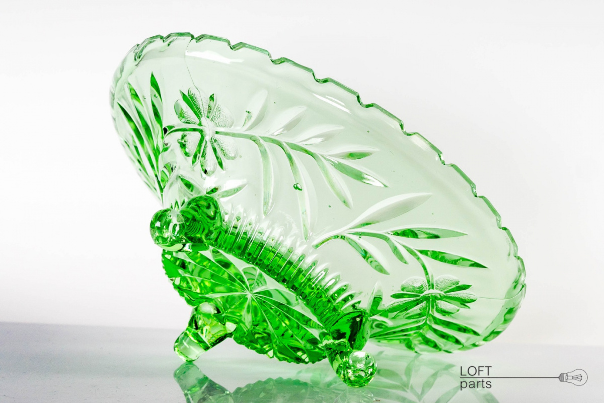 Zielona misa z kwiatowym motywem. Niestety nie znam jej pochodzenia ale prawdopodobnie pochodzi z jednej z niemieckich hut szkła.
