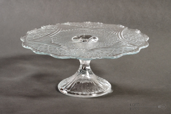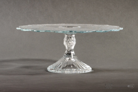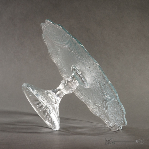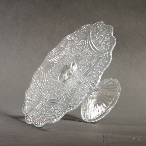 Bezbarwna patera/tortownica ''Girlandy'' wyprodukowana w Hucie Szkła Gospodarczego Ząbkowice.
