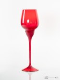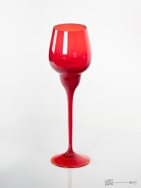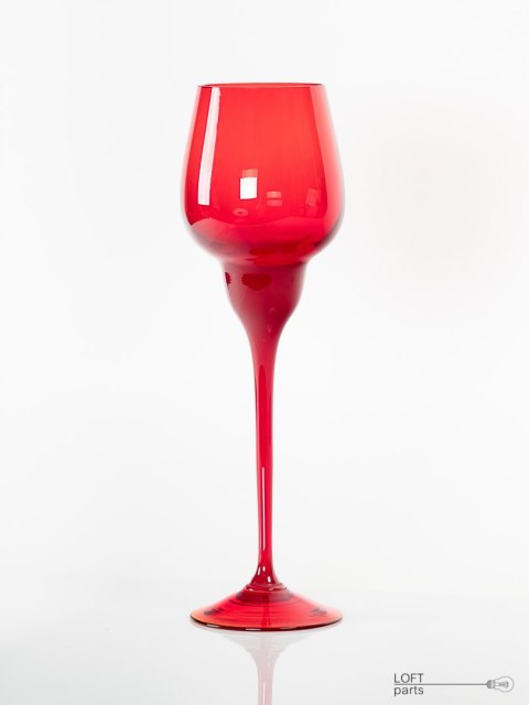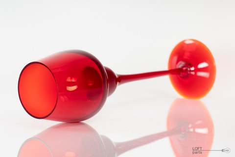 Czerwony kielich zaprojektowany przez Ludwika Fiedorowicza. Wyprodukowany w Hucie Szkła Gospodarczego Ząbkowice.