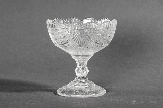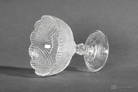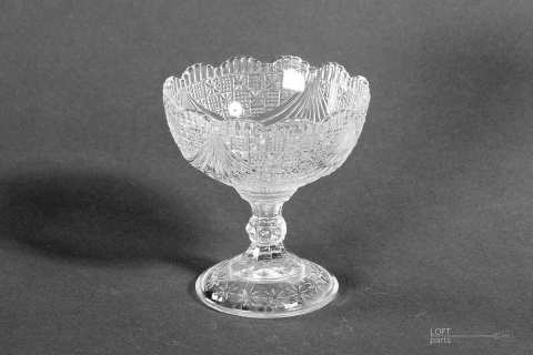 Bezbarwna bombonierka ''Girlandy'' wyprodukowana w Hucie Szkła Gospodarczego Ząbkowice. W katalogu huty nosi numer 339.