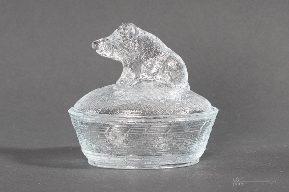 Colourless ''Dzik'' chocolate box produced in the Ząbkowice Glassworks. In the catalogue of the steelworks, it is numbered 187.