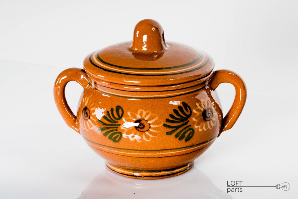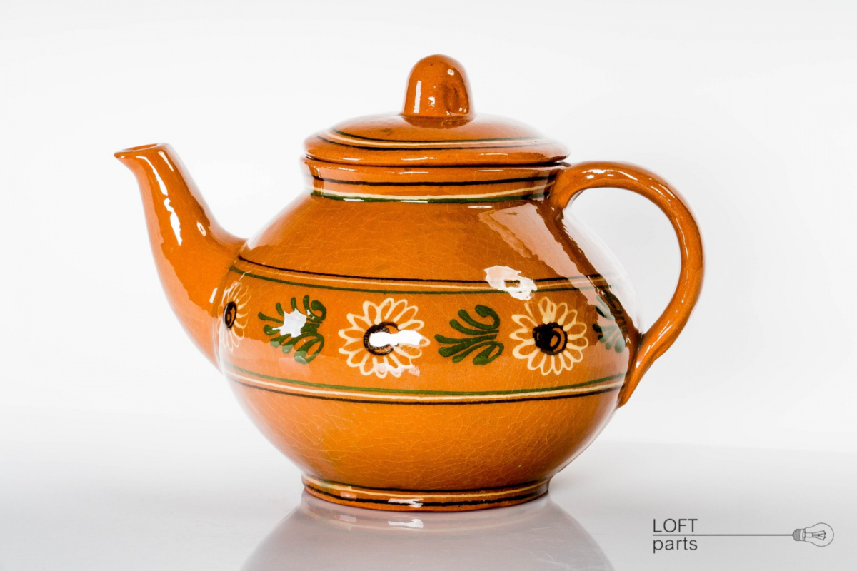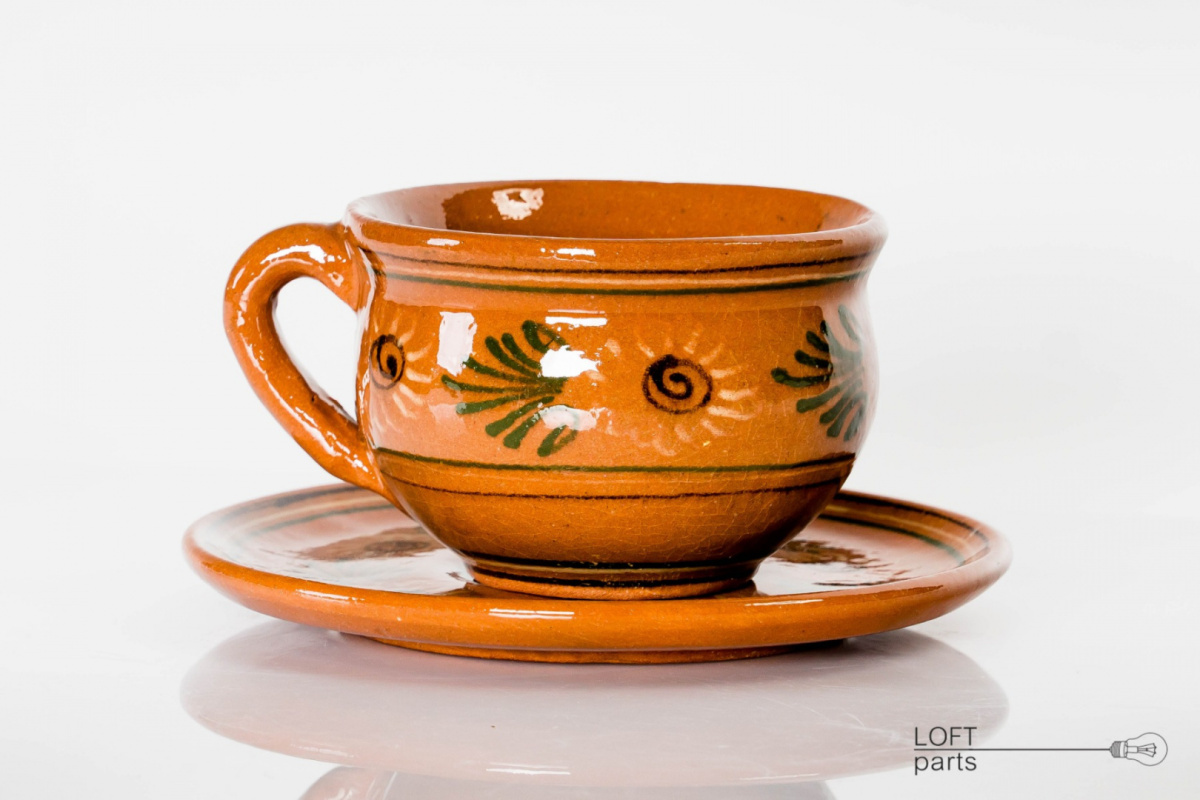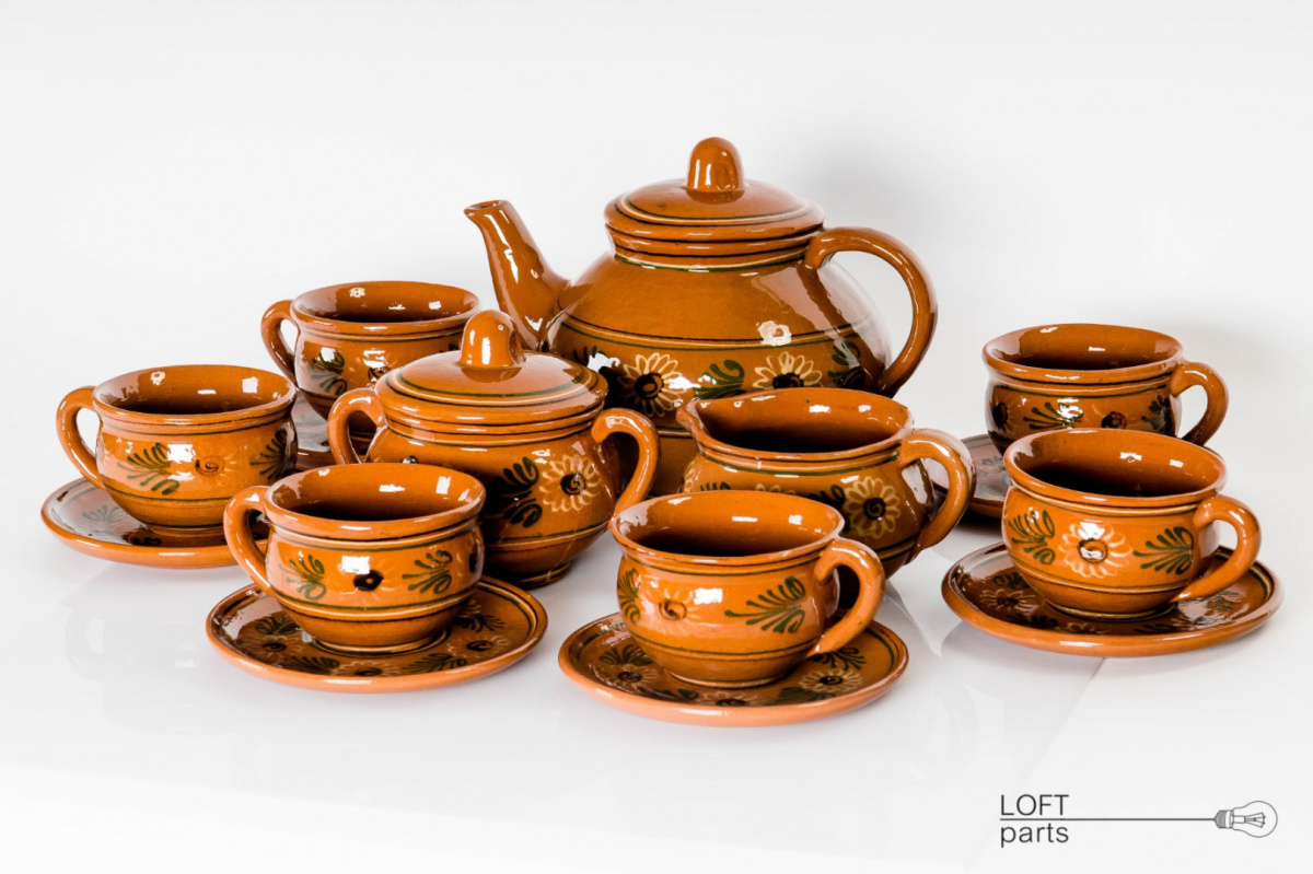 Coffee and tea set produced in the Cooperative of Folk and Artistic Industry "Kamionka" in Łysa Góra. The set consists of six cups with saucers, a kettle, a sugar bowl and a milk jug.