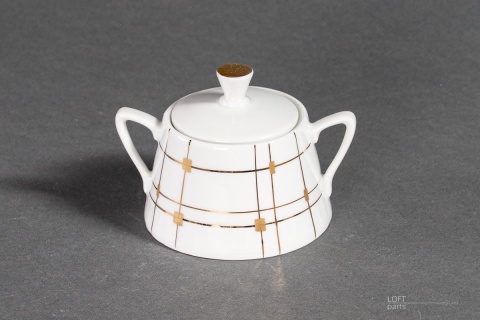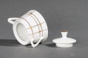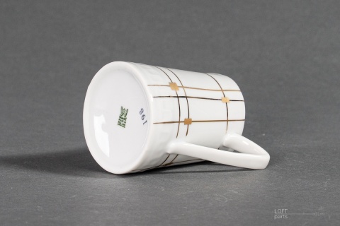 Coffee set ''Millenium/Helena'' consisting of four cups, six saucers, a jug, a milk bowl and a sugar bowl. Made in the Krzysztof Porcelain Factory. Designed by Edward Ruszczyński.