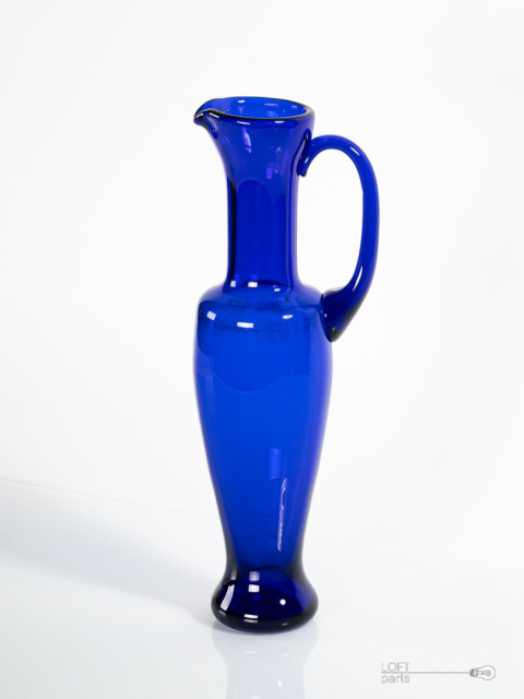 Kobaltowy dzban zaprojektowany przez Zbigniewa Horbowego. Wyprodukowany w Hucie Szkła Artystycznego Barbara.