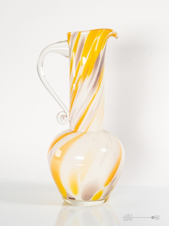Multicolor pitcher designed by designed by Ludwik Fiedorowicz. Made in the Tarnowiec Glassworks.