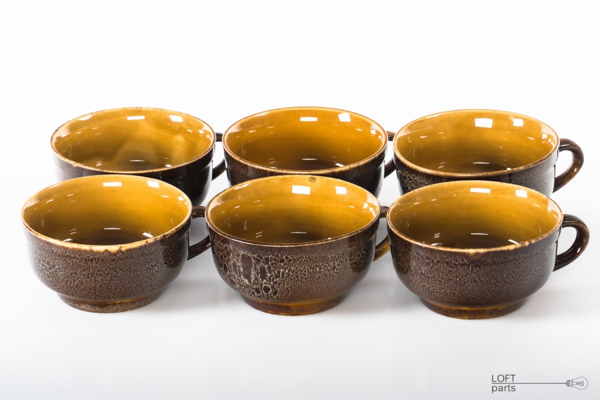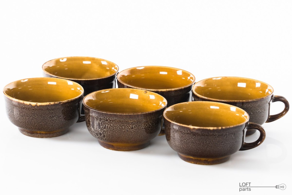 Zestaw sześciu filiżanek ''Nefryt'' wyprodukowanych w Mirostowickich Zakładach Ceramicznych.