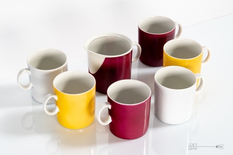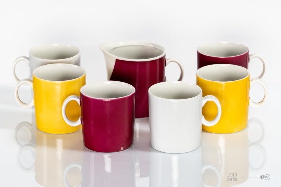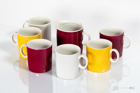 Zestaw ''Milo'' składający się z sześciu filiżanek i mlecznika zaprojektowanych przez Adama Sadulskiego. Wyprodukowany w Zakładach Porcelany Stołowej Karolina.