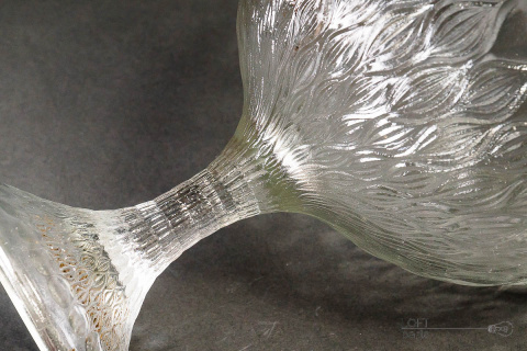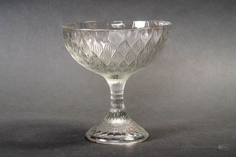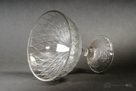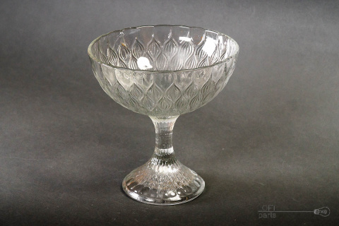 Colourless fruit stand ''Almonds'' designed by Eryka Trzewik-Drost. It comes from the Ząbkowice Household Glass Factory.