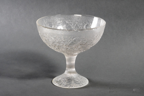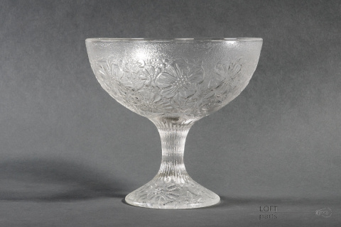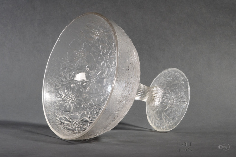 Bezbarwna patera/owocarka ''Anemony'' zaprojektowana przez Erykę Trzewik-Drost. Wyprodukowana w Hucie Szkła Gospodarczego Ząbkowice.