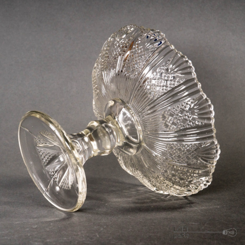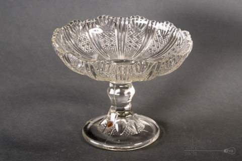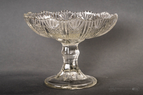 Colourless fruit stand produced in the Ząbkowice Glassworks. In the catalogue of the glassworks it bears the number 320.