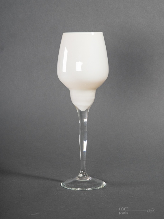 A white glass on a colourless foot designed by Ludwik Fiedorowicz. Manufactured in the Ząbkowice Glassworks.