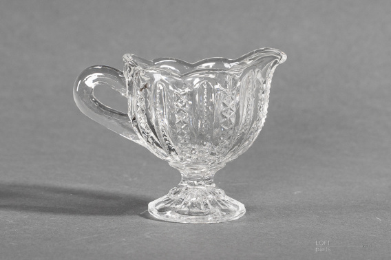 Bezbarwny mlecznik wyprodukowany w Hucie Szkła Gospodarczego Ząbkowice. W katalogu huty nosi numer 2201.