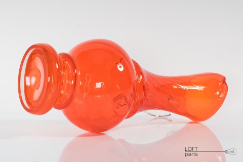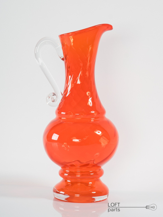 A red jug with a colourless handle ''Verona'' designed by Ludwik Fiedorowicz. Manufactured in the Ząbkowice Household Glass Factory.