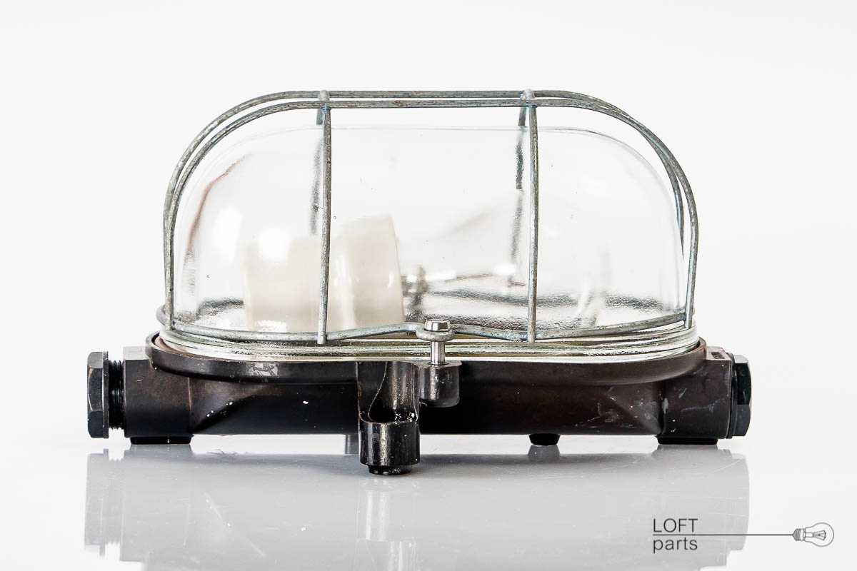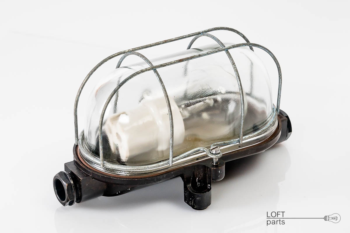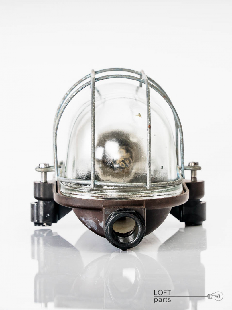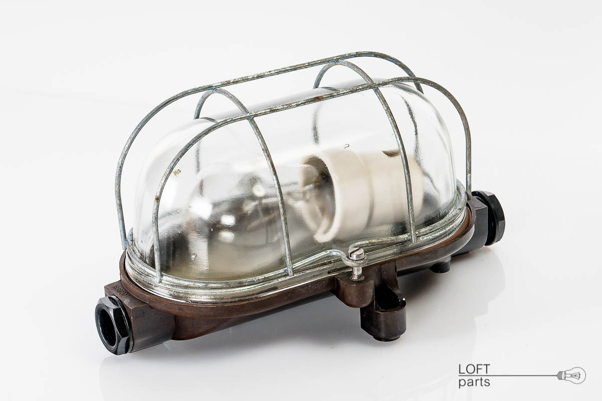 Ścienna lampa bakelitowa. Podstawa lampy wykonana z brązowego bakelitu. Wyprodukowana w DDR. Jest wyposażona w klasyczną żarówkę.