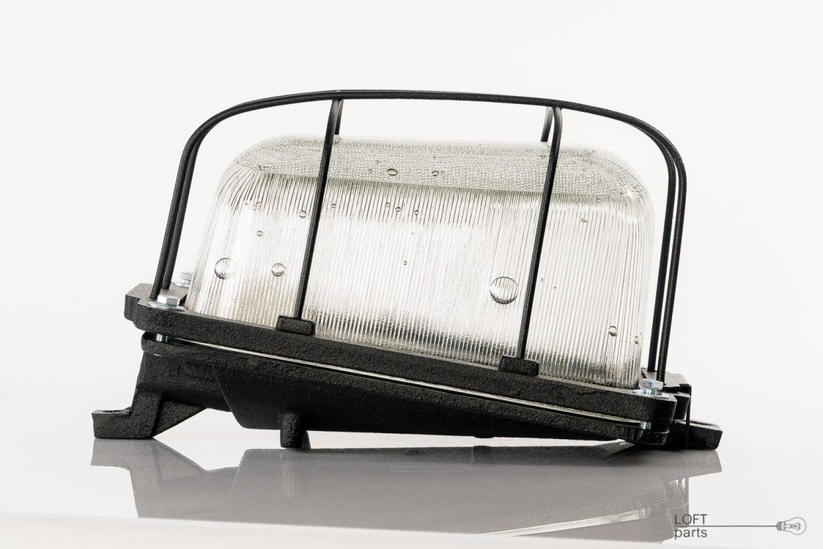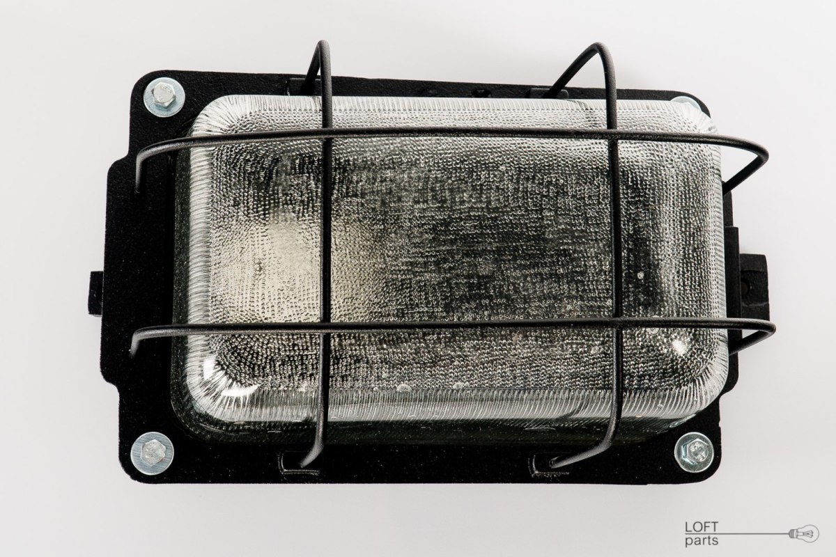 Ścienna lampa żeliwna w kolorze czarnym. Wyposażona w żarówkę.