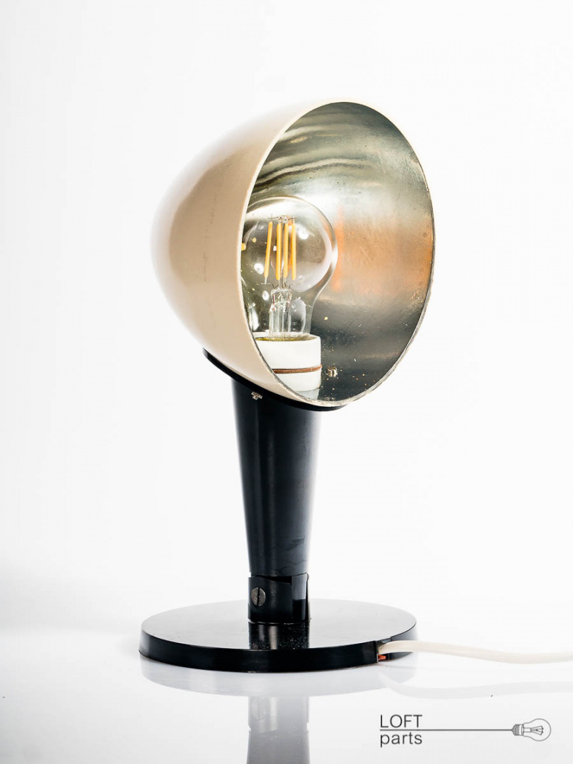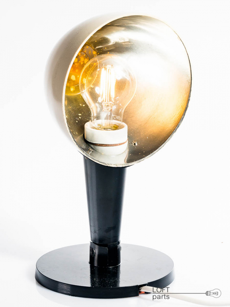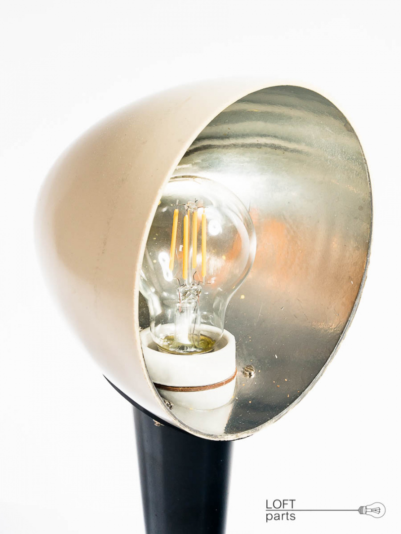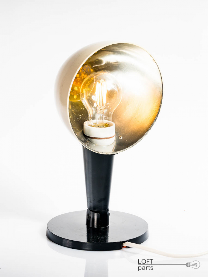 Lampa stojąca z bakelitową podstawą. Wyprodukowana w DDR. Wposażona w filamentową żarówkę LED.