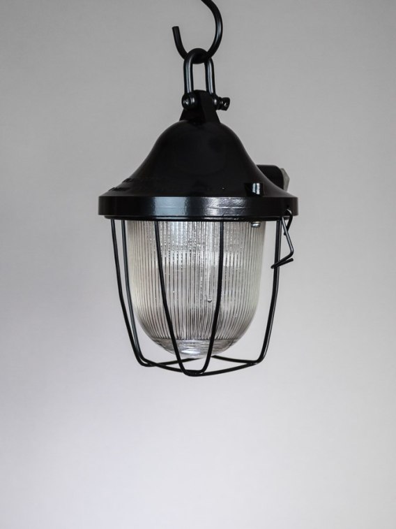 Aluminiowa lampa wisząca w kolorze czarnym. Wyposażona w żarówkę.