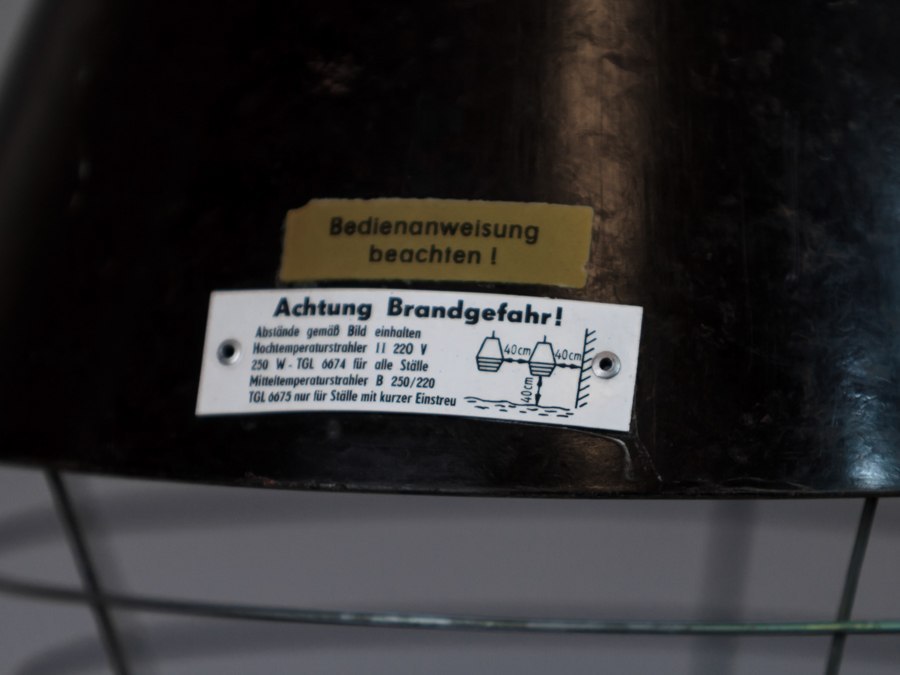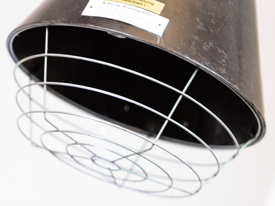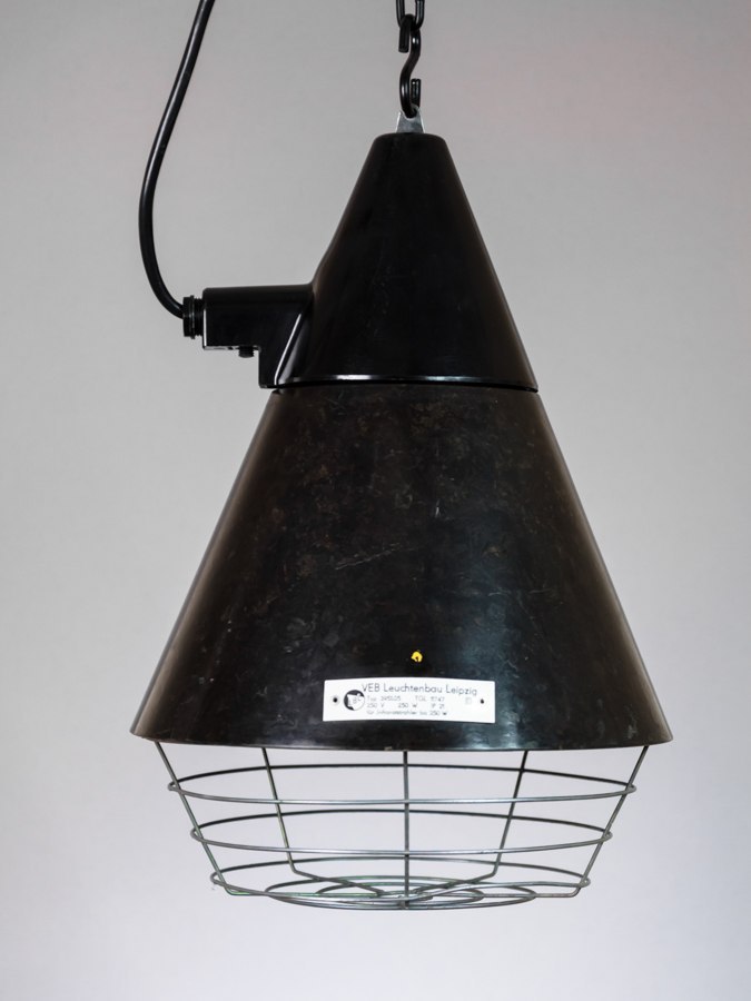 Wisząca lampa bakelitowa w kolorze brązowym. Wyposażona w żarówkę i kabel zasilający.