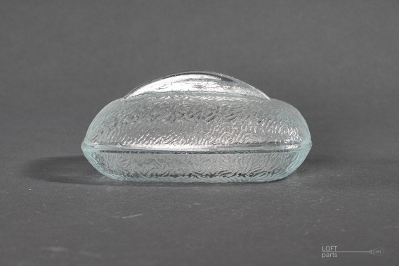 Bezbarwna maselniczka ''Avocado''. Wyprodukowana w Hucie Szkła Gospodarczego Hortensja. Maselniczka ma niewielkie ukruszenie na krawędzi (widoczne na zdjęciach).