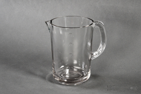 A colourless measuring jug produced in the Ząbkowice Household Glass Glassworks.