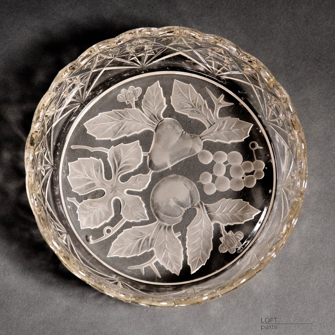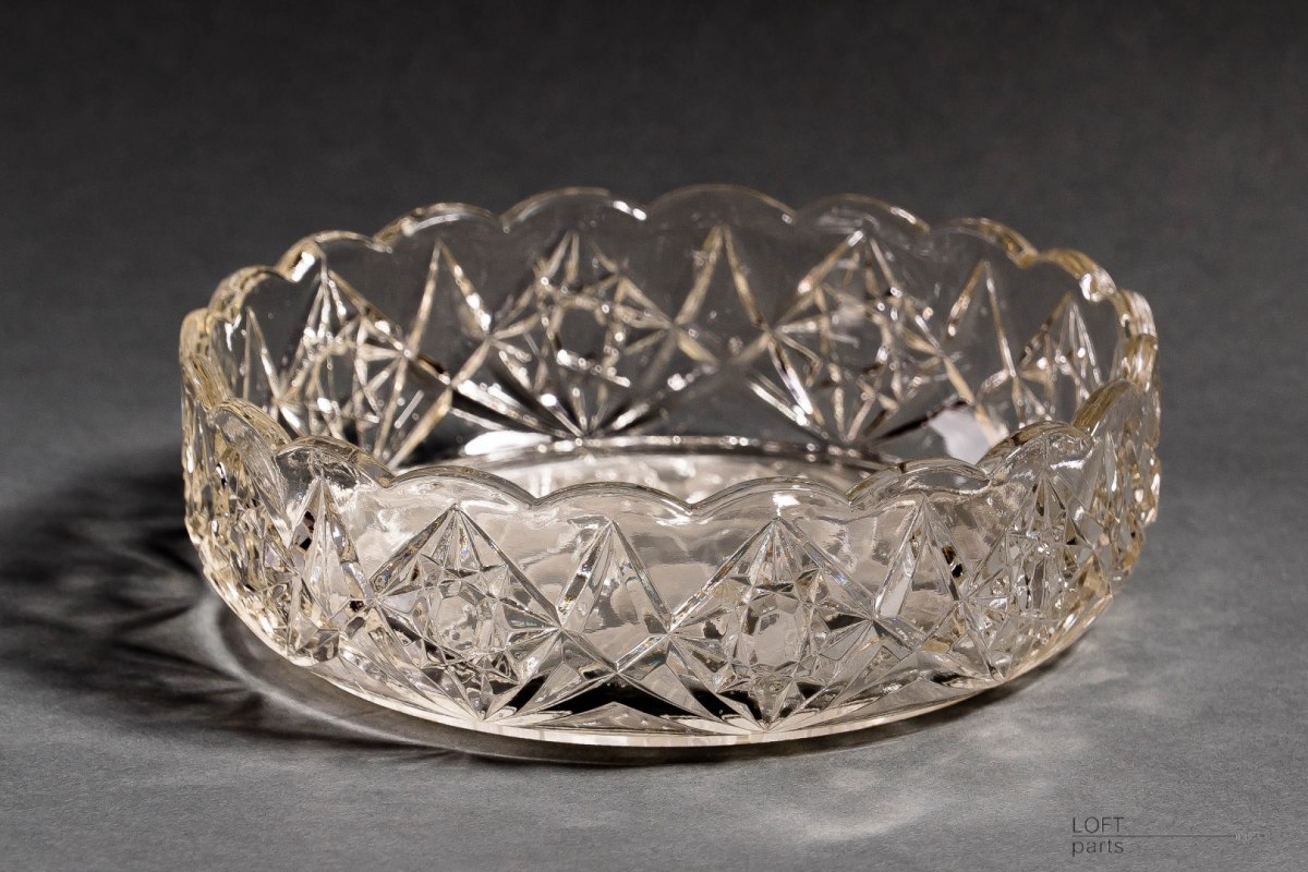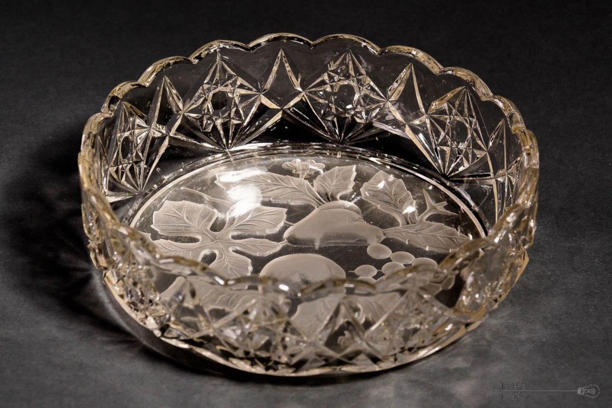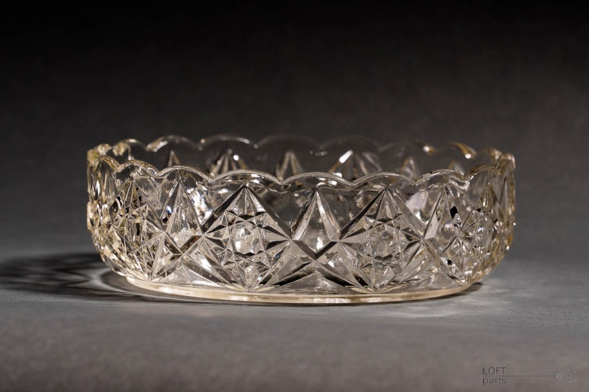 Bezbarwna misa wyprodukowana w Hucie Szkła Gospodarczego Hortensja. W katalogu huty nosi numer 367.