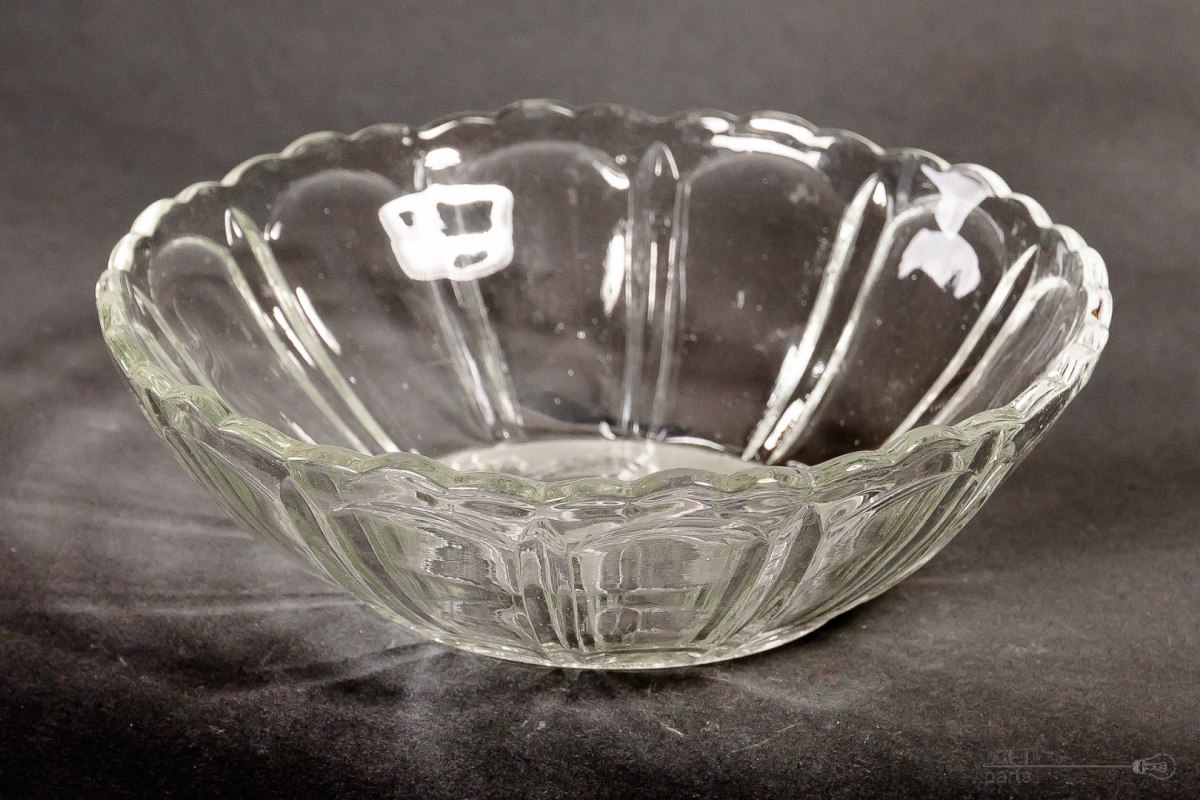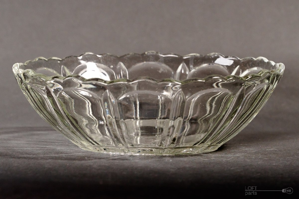 Bezbarwna misa wyprodukowana w Hucie Szkła Gospodarczego Hortensja. W katalogu huty nosi numer H19-104.